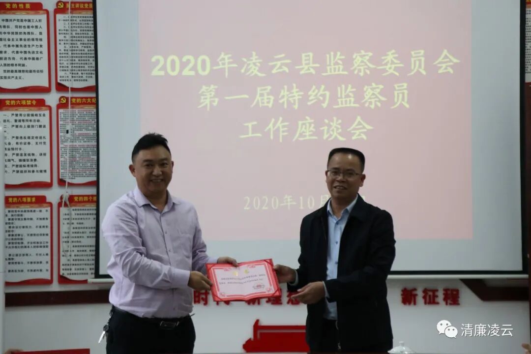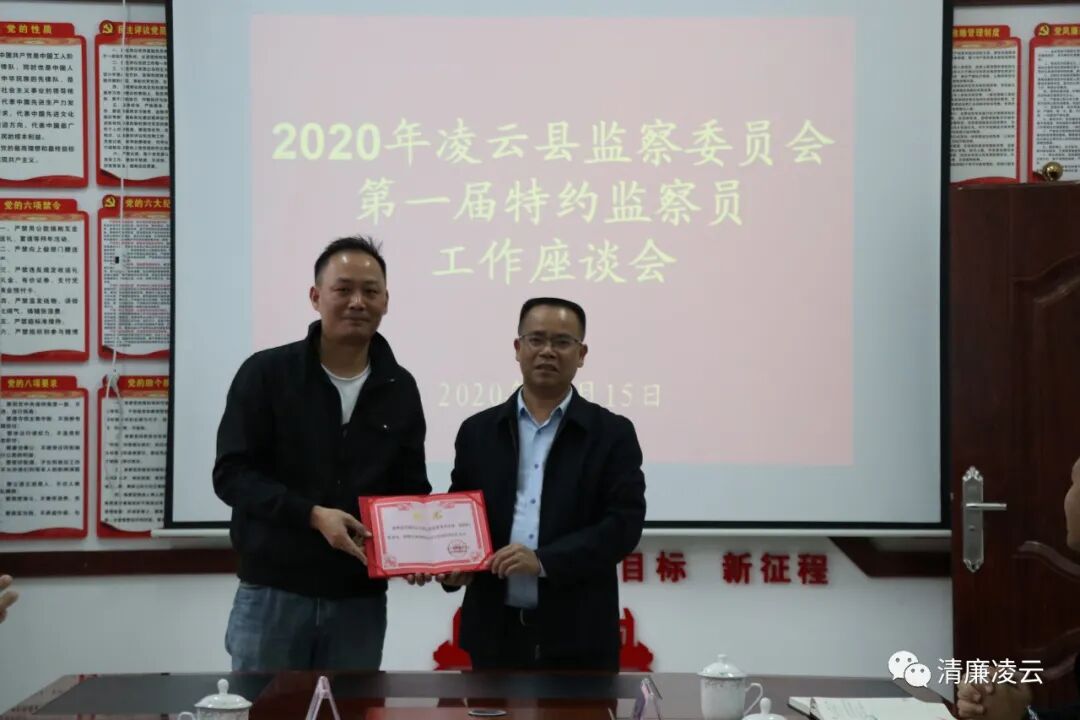 会上,辛荣根为本届新聘请的9名特约监察员颁发了聘书。县纪委副书记、监委副主任梁福积通报了2020年凌云县纪检监察工作开展情况,并针对纪检监察业务工作进行培训。